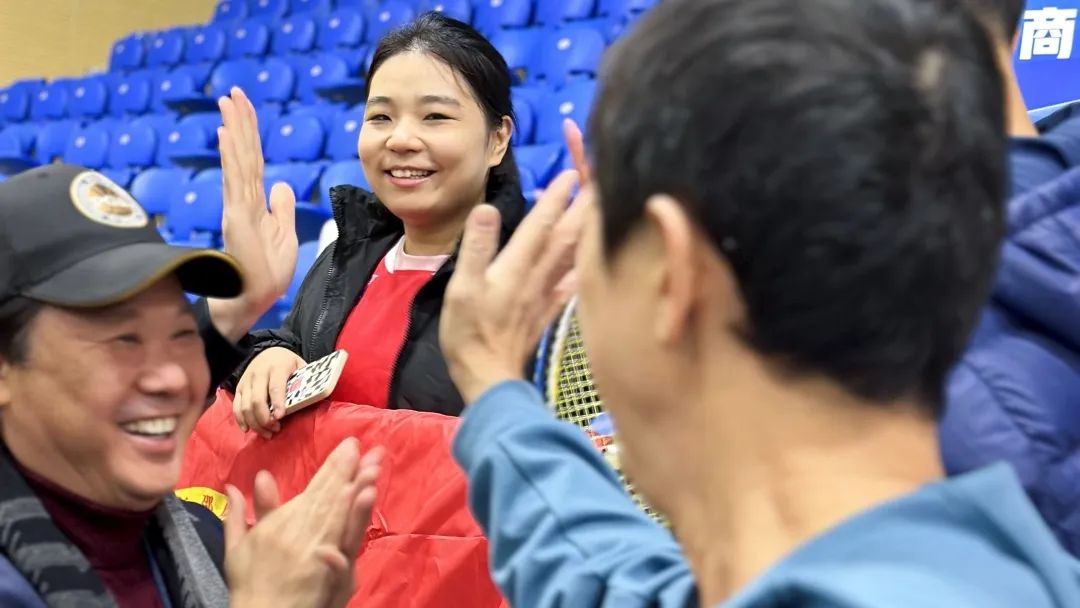 运动员在赛场上拼搏,赛场外拉拉队为选手们加油打气。我会常务副会长、羽毛球俱乐部主席曾鸣密切关心本次比赛,一早来到会场为整日的比赛亲自助阵。羽毛球队队长陈朝晖带领拉拉队喊出了邵商队伍的气势,常务副会长杨进忠也在第一时间赶来现场为比赛呐喊助威。在这紧张的比赛中,选手们的动作与拉拉队的欢呼声交相辉映。