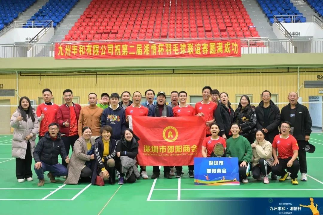 “邵商羽联、勇往直前”在2023年由深圳市湖南市州商会联席会、深圳市湖南高校校友会联盟共同发起的“九州丰和·湘情杯“羽毛球比赛中,深圳市邵阳商会羽毛球联合会成绩喜人!在22支球队中一鼓作气挺进决赛,在冠、亚中争夺赛中,与深圳市益阳商会进行了深度的交流与学习,力挽狂澜,最终通过奋勇拼搏取得了满意的成绩。整个活动经过了一整天的激烈拼搏,队友们轮番上阵,拉拉队音震全场。