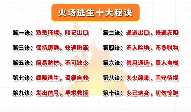 三不:1、不乘普通电梯;2、不轻易跳楼;3、不贪恋财物。