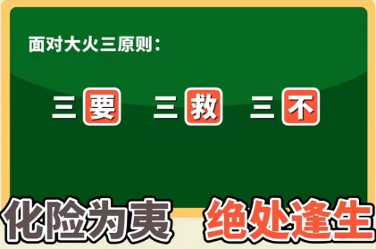 面对大火,必须坚持三要、三救、三不的原则,才能够化险为夷,绝处逢生。
