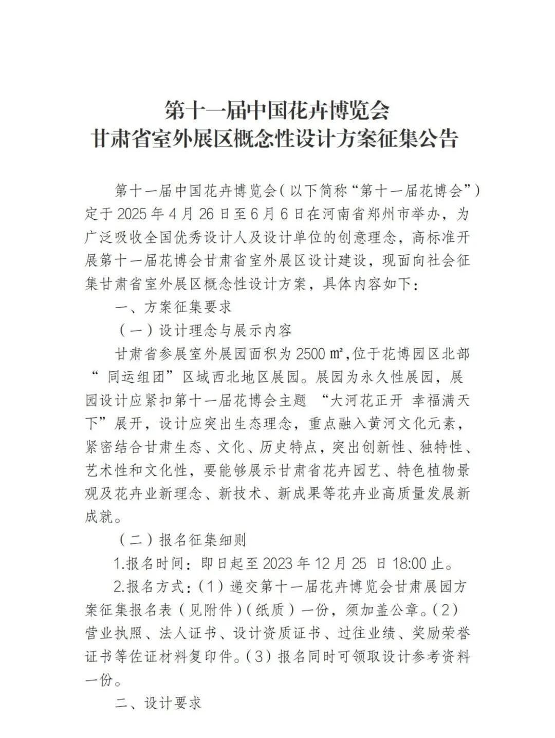 1、关于征集第十一届中国花卉博览会甘肃省室外展区概念性设计方案的公告(2).docx