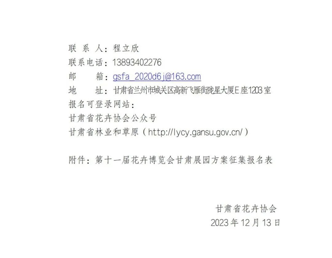 点击下方即可查看《第十一届中国花卉博览会甘肃省室外展区概念性设计方案征集公告》、下载报名表附件!