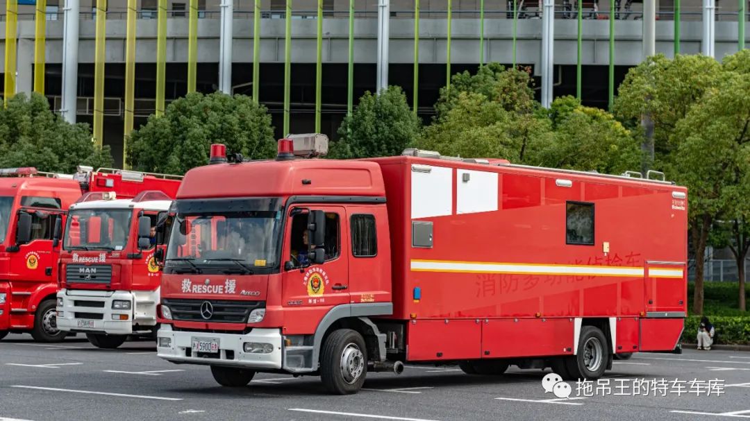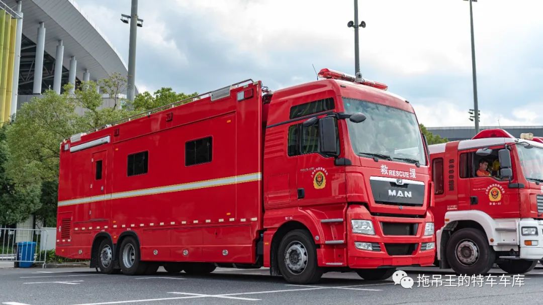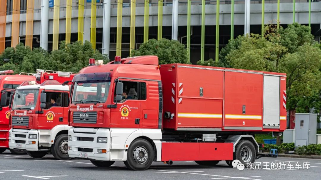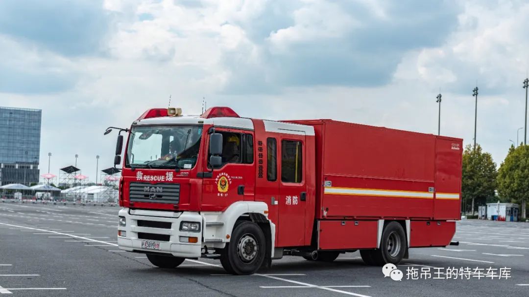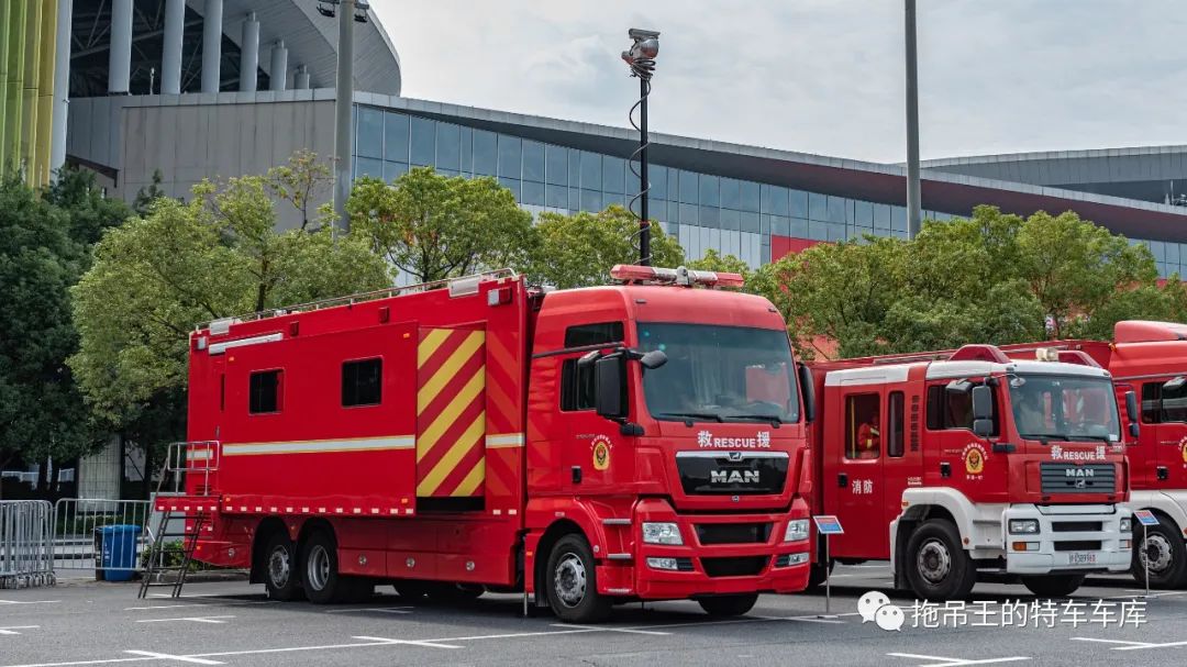 首先,从消防救援车辆开始介绍。本次参与保障的消防救援车辆种类繁多,包含了城市主战、抢险救援、防化侦检等多种类型。