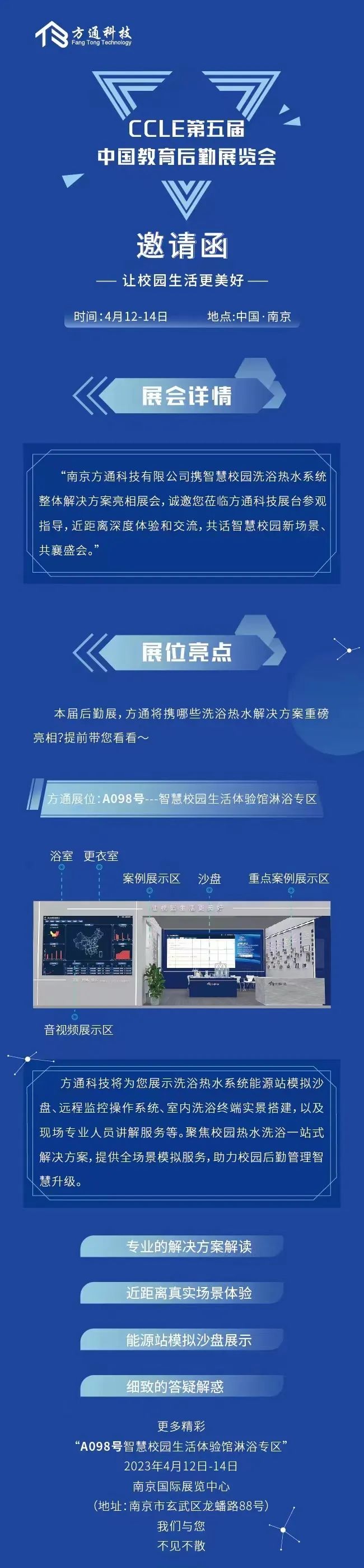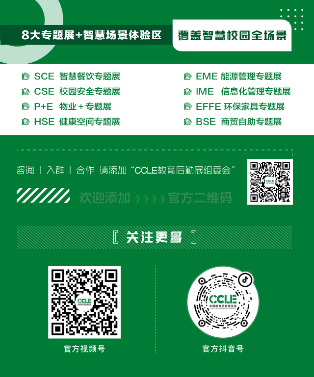 CCLE中国教育后勤展览会,简称“CCLE教育后勤展”。展会聚焦校园后勤管理服务,通过展示校园安全、智慧餐饮、能源管理、环保家具、校园信息化等多个方面展品,以及组织开展全国学校教育后勤领域论坛会议等多方面服务,打造集展览展示、学习交流、供需链接、贸易合作等功能于一体的校园综合服务平台,引领教育后勤管理变革,助力校园管理服务升级,提升校园管理服务保障能力,助推新时代教育后勤现代化建设。