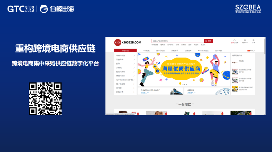 近期,由白鲸出海主办的GTC2023全球流量大会于深圳福田会展中心7&8号馆正式举办。活动中,8号馆分会场B区举办了【探索科技消费品牌出海长青之路】线下交流会,共同聚焦科技消费品牌出海。本场活动中,深圳市跨境电子商务协会产业带秘书长黄永林、杭州云片网络科技有限公司副总裁盛梦洁、Twilio Staff Engineer Jimmy Pak、上海联宠智能科技有限公司CMO王敏君、WebEye企业服务总经理张瑞捷、涂鸦智能中国区品牌业务总监贾艳、Indiegogo中国区业务发展总监顾明君、元籁科技CEO刘奕彤应邀参会。本篇文章,听深圳市跨境电子商务协会产业带秘书长黄永林讲述科技消费品牌出海全球化跨境电商趋势与洞察:近几年来,在各方因素的加持下,很多企业或品牌开始走向海外。据海关总署统计数据,2023年1-7月份,全国货物进出口量突破23.55万亿,与2019年上半年同期相比增长36.7%,其中跨境电商进出口1.1万亿元,同比增长16%。从最早期的卖货时代到品牌意识觉醒再到本土化乃至全球化,中国跨境电商品牌正在各大细分领域中悄然崛起。就DTC出海品牌生态来看,如元鼎智能、Jackery、等国产品牌,都相继在全球舞台上取得了较为亮眼的成绩。谈及中国品牌在海外取得成功的几个原因,嘉宾表示,从中国的制造优势到数字化供应链优势,中国的出海品牌始终要比海外品牌具备着更大的成功基因。基于目前“跨境电商+产业带+柔性供应链”在2022年,深圳市跨境电子商务协会上线了一个跨境电商集中采购供应链管理平台叫“K100B2B.COM”,把全球各地符合需求的卖家与全国各地产业带源头工厂进行对接,目前平台上线有超过300多家工厂,通过对整个产业带、产业集群进行数字化升级,来加快产品各个流程的速率。科技消费品牌出海,是一条充满挑战与机遇的长青之路。希望大家在全球市场的竞争中,不断创新、不断突破,争取在激烈的商业环境中立于不败之地。