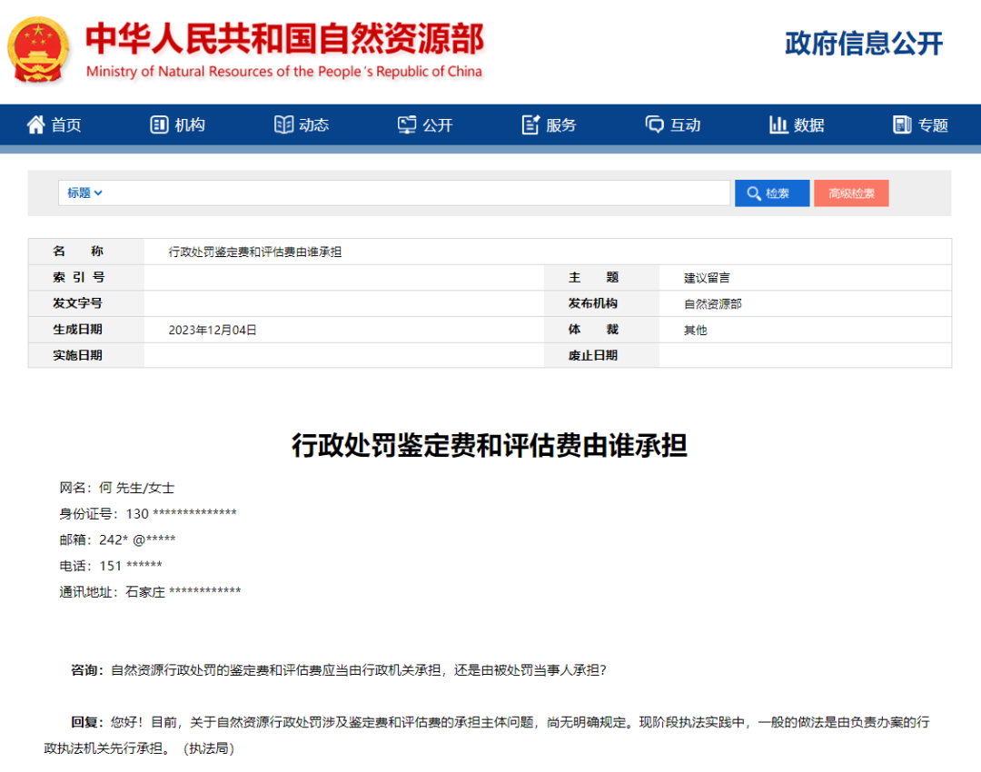 咨询回复:砂石土类矿产采矿权新立、行政处罚鉴定费和评估费由谁承担