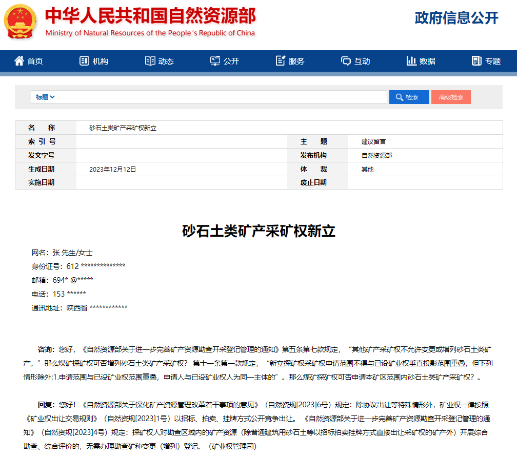 回复:您好!《自然资源部关于深化矿产资源管理改革若干事项的意见》(自然资规[2023]6号)规定:除协议出让等特殊情形外,矿业权一律按照《矿业权出让交易规则》(自然资规[2023]1号)以招标、拍卖、挂牌方式公开竞争出让。《自然资源部关于进一步完善矿产资源勘查开采登记管理的通知》(自然资规[2023]4号)规定:探矿权人对勘查区域内的矿产资源(除普通建筑用砂石土等以招标拍卖挂牌方式直接出让采矿权的矿产外)开展综合勘查、综合评价的,无需办理勘查矿种变更(增列)登记。(矿业权管理司)