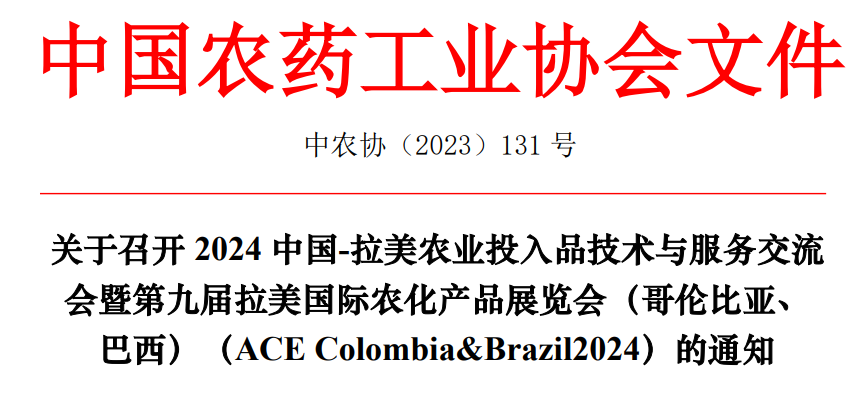 2023年8月,由中国农药工业协会和中国磷复肥工业协会主办、巴西梅里埃营养科学集团协办的“第八届拉美国际农化产品展览会暨2023中国拉美农业投入品技术与服务交流会”在巴西圣保罗成功召开。展会得到了中国驻圣保罗总领馆、巴西农业、畜牧业和供应部、巴西卫生监督管理局、巴西农业投入品协会、梅里埃营养科学集团、巴西非专利农药协会、巴西法规和可持续性发展研究院等大力支持。这是首次中国农药工业协会和中国磷复肥工业协会、联合巴西相关协会共同搭建的中国-拉美农化展览和交流平台,助力企业“走出去”,精准发力服务农化企业开拓南美市场。来自中国、巴西、阿根廷等农药和肥料行业40余家知名企业参展,吸引了巴西及周边地区500多专业买家参加。期间和巴西国家棉花农民协会共同组织了“第一届中国-巴西农业投入品生产交流会议”,赴巴西首都巴西利亚实地参观了巴西棉花农民协会及其安排的大型棉花农场。