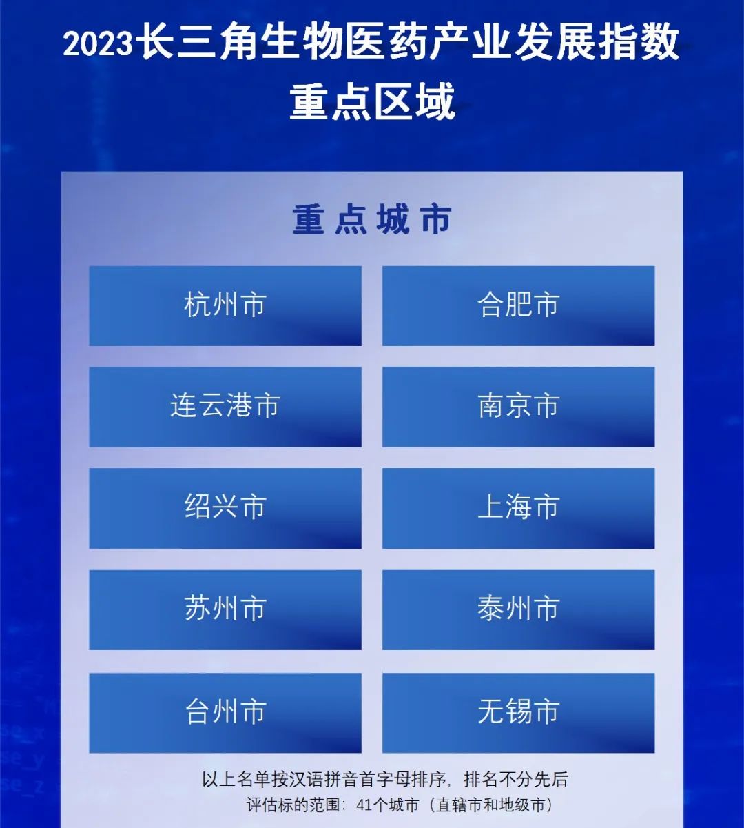 在10大重点城市中,上海市作为全国四大直辖市之一,引领长三角生物医药产业发展。江苏省占据五成席位,分别为苏州市、南京市、连云港市、泰州市和无锡市五大城市入榜;杭州市、台州市和绍兴市三大入榜城市,已成为浙江省生物医药产业的核心集聚区;合肥市的生物医药产业近年来快速发展,成为安徽省唯一入榜的城市。
