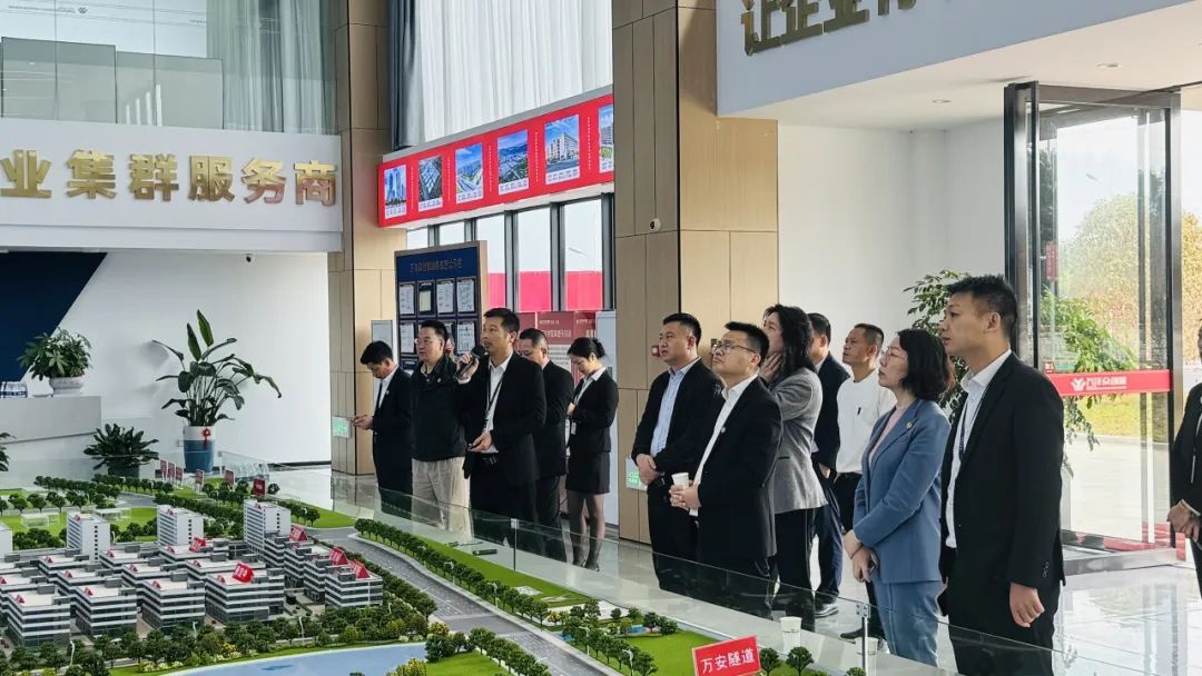 在招商中心,何思聪向商会一行详细介绍了万安生态产业园区的整体规划、建设情况以及招商情况。