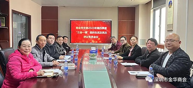 根据《中国共产党支部工作条例》及上级党组织的规定,12月26日上午,深圳市金华商会/婺城商会党支部在商会办公室,召开2023第四季度“三会一课”组织生活及民主评议党员会议,会议由商会党支部书记苏慧璟主持。