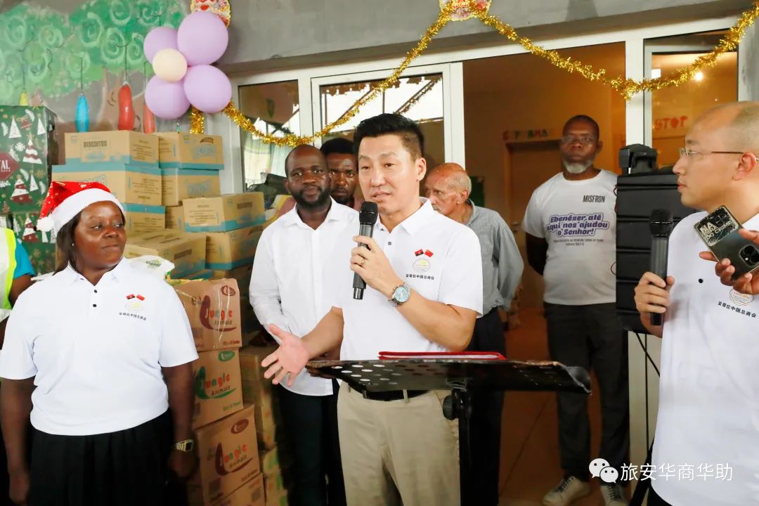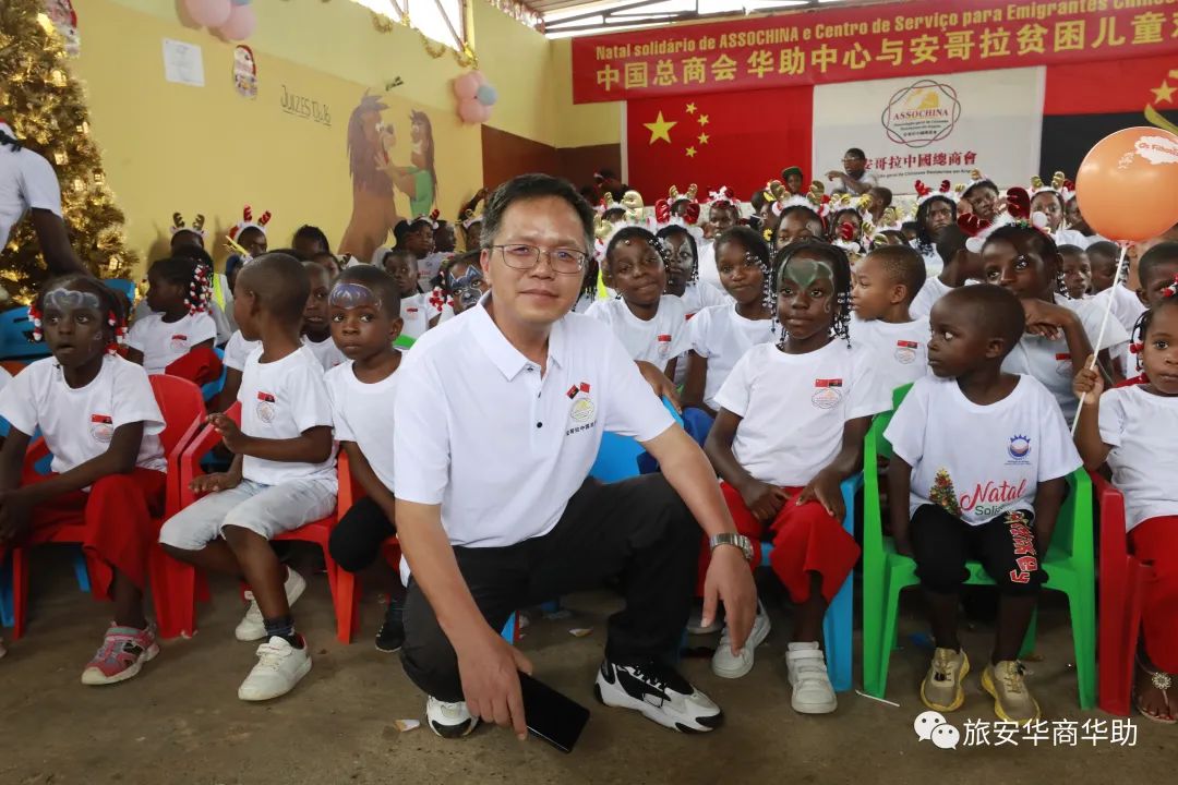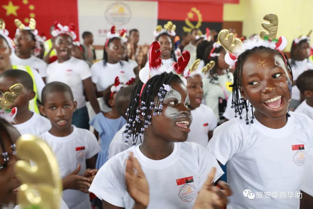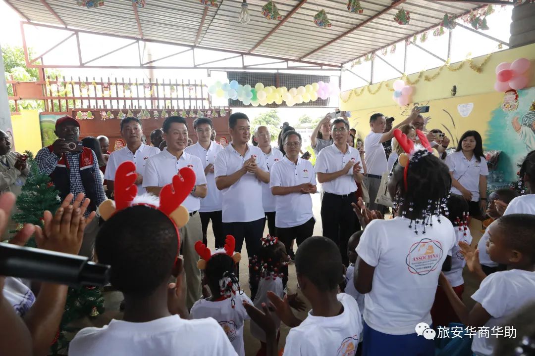 当地时间12月22日下午,中国总商会、华助中心与安哥拉上百名贫困儿童欢度圣诞。牛奶、果汁、饼干、巧克力、肉类、麦片、食用油、醋、米、玉米粉、意大利面、面粉、糖、芝士、香肠、蜂蜜等生活物资,学习用品和圣诞礼物堆满了孤儿院。