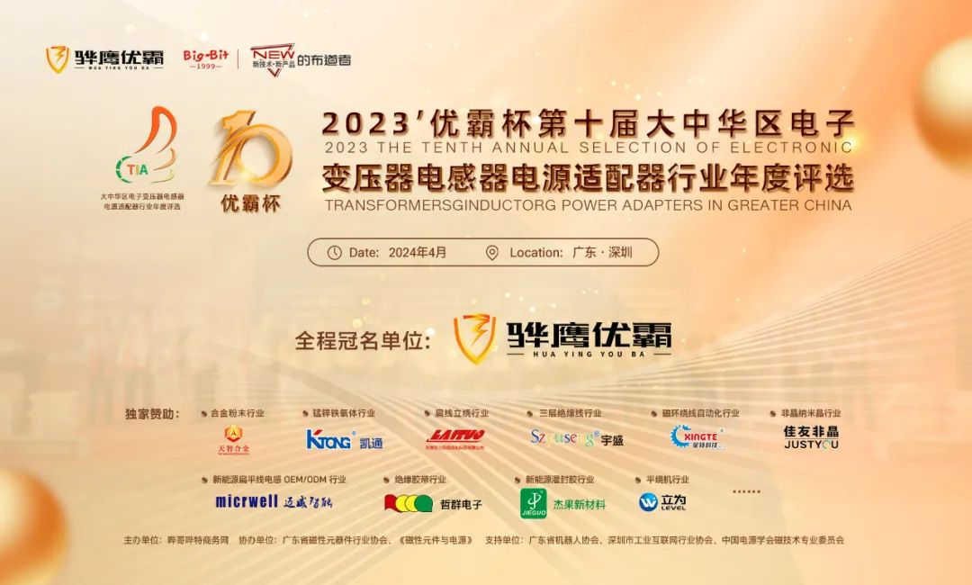 2023’“优霸杯第十届大中华区电子变压器电感器电源适配器行业年度评选”(下称行业评选)自10月9日自主申报与推荐以来,截止2023年12月21日,前后共有210家磁性元器件与电源企业报名参与,经主办方慎重筛选,现入围企业名单现已全部确定。