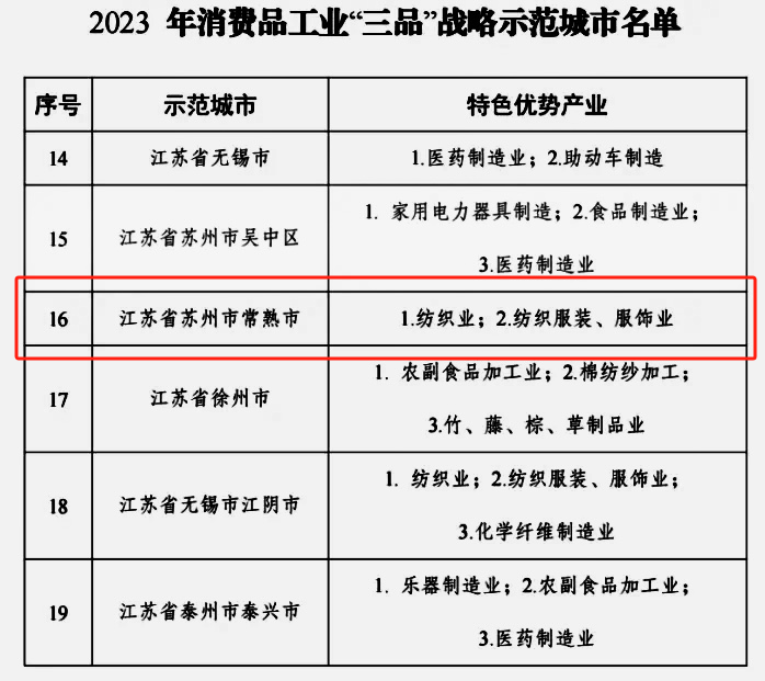 常熟以秋冬装产业集群、高端面料为重点,构建现代纺织服装产业体系;提升纺织面料附加值,引导常熟纺织特色产业集群向高端化、特色化面料产业基地发展。