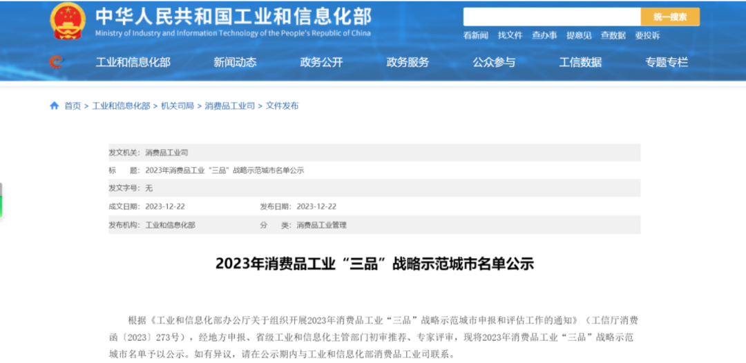 2023年消费品工业“三品”