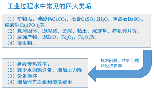 工业水用于冷却塔、锅炉、石油钻井作业、食品生产、纸浆和造纸制造、盐化、半导体制造、酿 造业、国内和工业洗衣应用等,工业水系统的有效运行在很大程度上仍然取决于对这些垢的控制