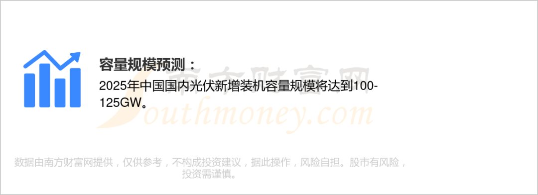 目前国内大规模的光伏项目建设,如分布式光伏和光伏电站,为光伏市场提供了稳定的需求。这些项目不仅可以满足当地电力需求,还可以带动相关产业链的发展。光伏作为重要的可再生能源之一,在国内市场具有广阔的发展前景。据预测,2025年中国国内光伏新增装机容量规模将达到100-125GW。