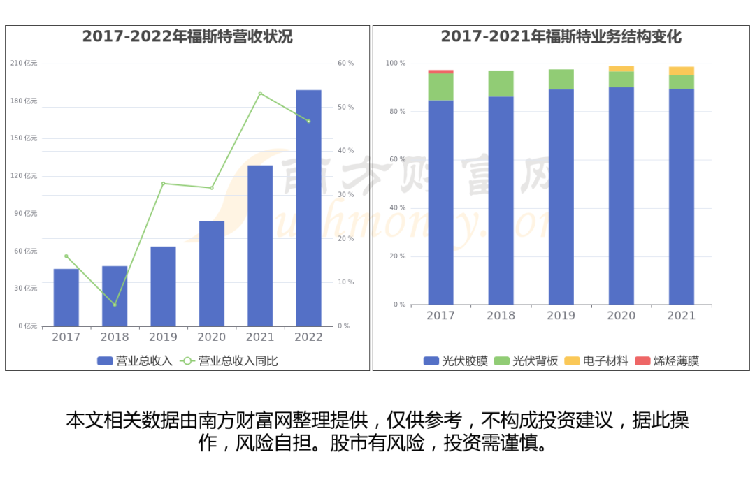 福斯特创始于2003年5月12日,2014年9月5日在上海证券交易所上市,股票代码603806。公司主营业务为太阳能电池胶膜、太阳能电池背板、感光干膜等产品的研发、生产和销售。