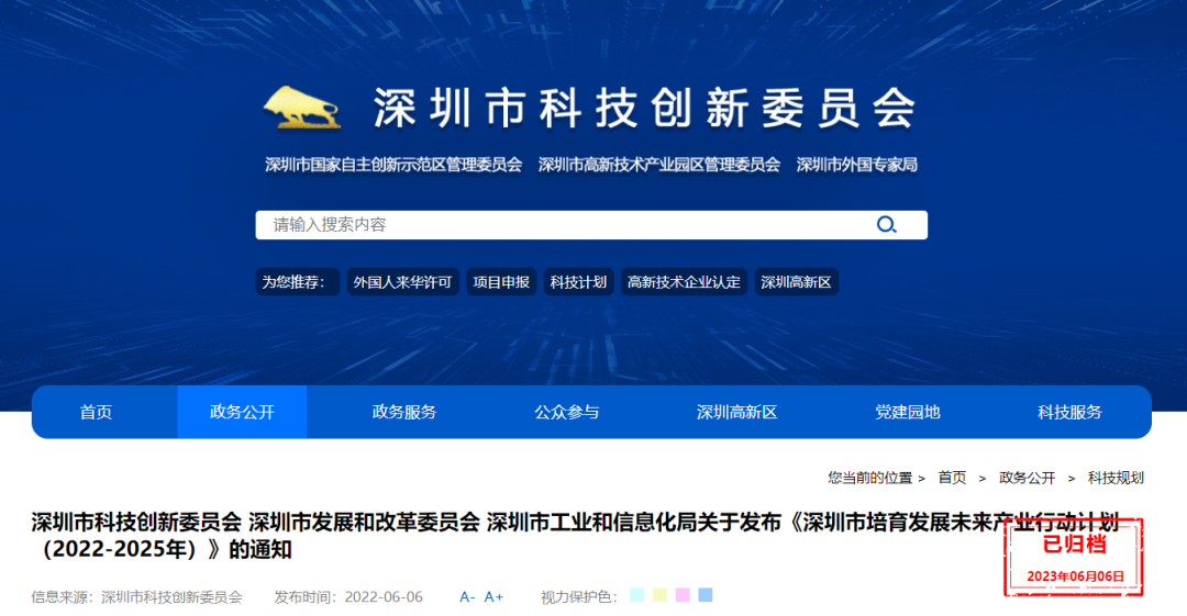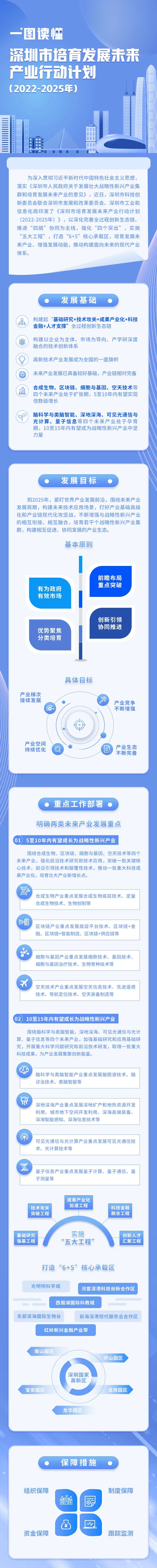 2022年6月6日,深圳市科技创新委员会联合深圳市发展和改革委员会、深圳市工业和信息化局印发了《深圳市培育发展未来产业行动计划(2022-2025年)》,以深化完善全过程创新生态链、推进“四链”协同为主线,强化“四个突出”,实施“五大工程”等,培育发展未来产业,增强发展动能,推动构建面向未来的现代产业体系。