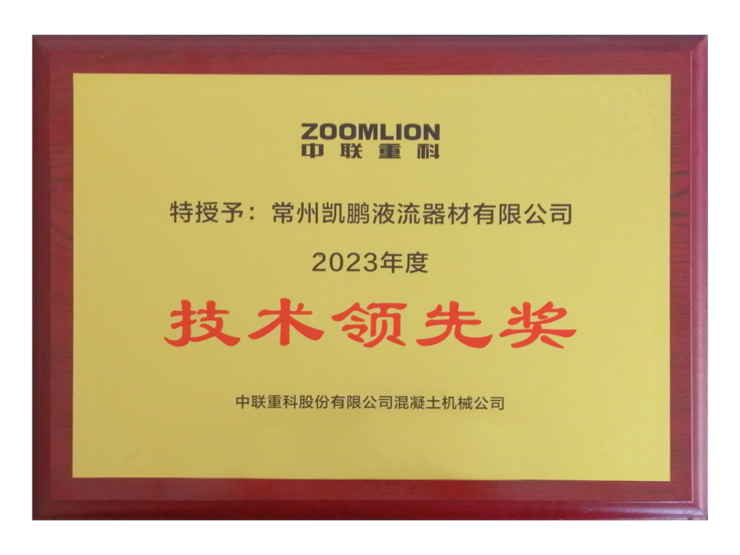 热烈祝贺常州凯鹏荣获中联重科混凝土机械公司“2023年度技术领先奖”