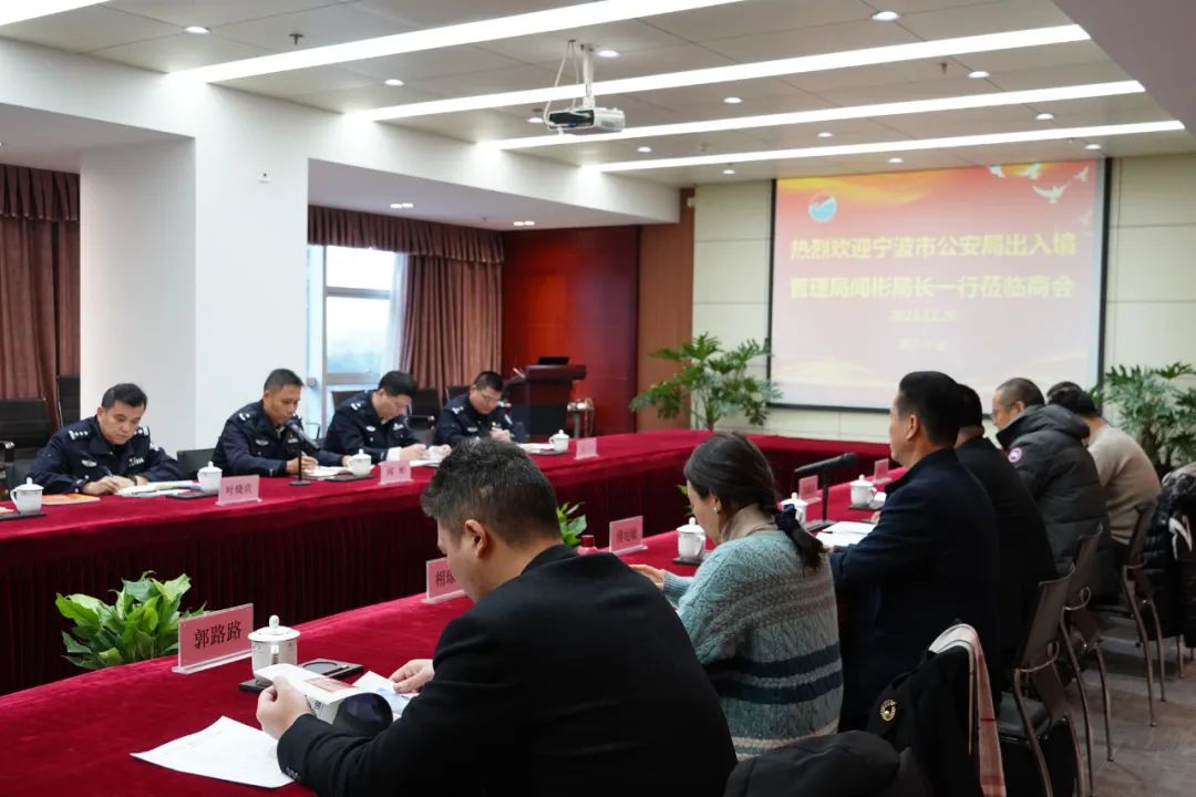 12月26日,宁波市公安局出入境管理局局长闻彬,宁波市公安局口岸签证签注处处长王东波一行到市侨商会,与商会代表进行了深入的指导交流。此次交流旨在加强政企合作,优化营商环境,共同推动宁波市的经济社会发展。 宁波市侨商会会长薛惊理,监事长傅旭敏,名誉会长兼执行会长朱海宏,执行会长相琼颖等参加了此次交流。