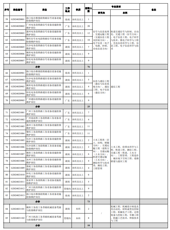中国铁路广州局集团有限公司2024年招聘普通高校毕业生公告(二)