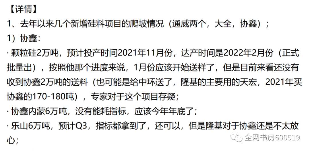 而一份硅料行业调研纪要,也可以佐证我们刚刚说的,里面提到协鑫内蒙项目有所拖延,理由就是能耗指标的,大家想,如果多晶硅项目都要拖延,更别说工业硅了。