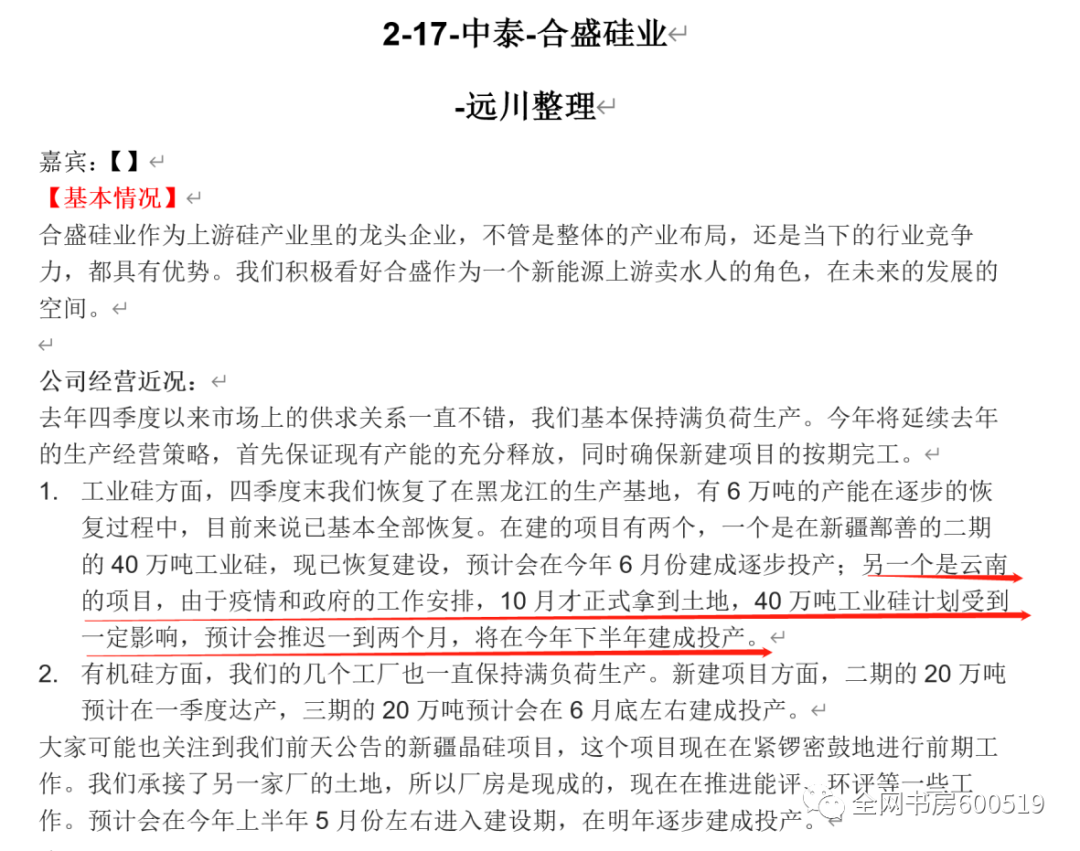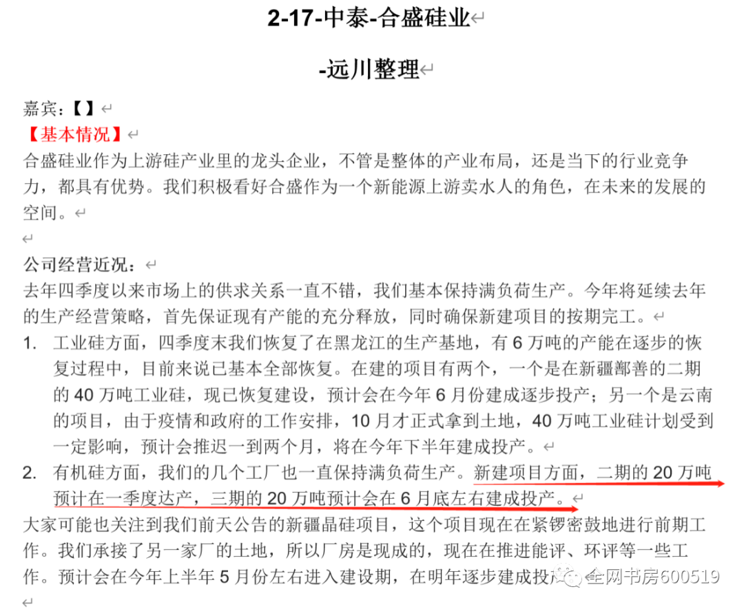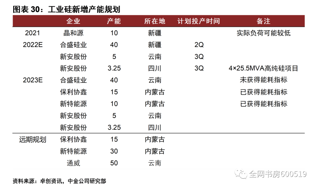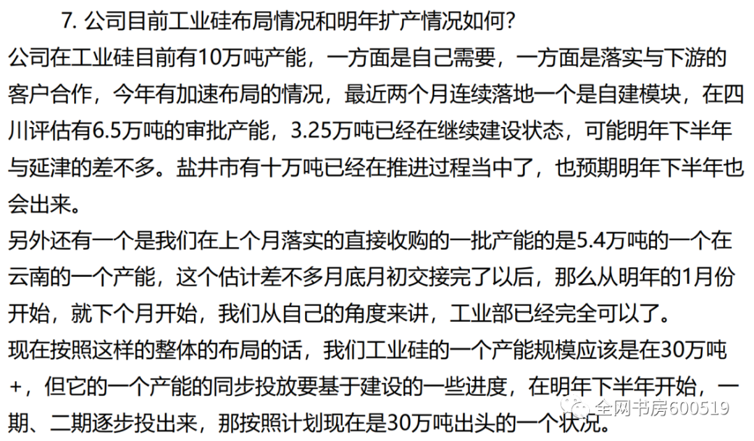 此外是新安的规划,在去年完成形成30万吨工业硅的产能。