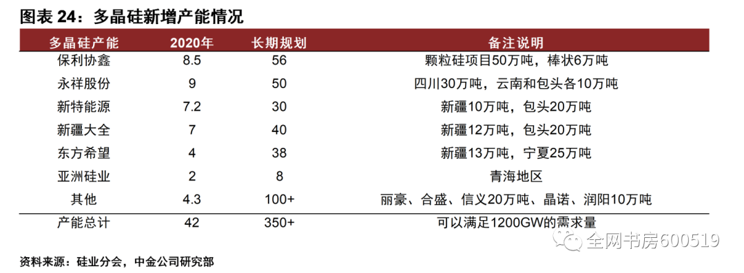 上面那张图采用的是硅业分会的年末数据,所以争议不大,基本上每家券商都是援引这图。但下面这张扩产规划,那有争议的地方就多了,我们这里的图还是采用中金的,但是我们会结合各家公司的电话会议,对图中一些细节做出合理的猜测。这图里说了合盛在云南的项目未获得能耗指标。