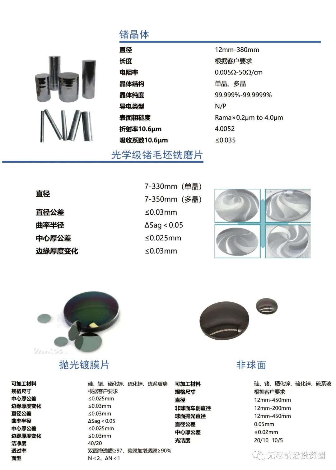 中锗科技是国家高新技术企业、专精特新中小企业,专注于高端半导体晶圆和红外光学产业解决方案的交付。公司产品包括锗衬底、磷化铟衬底以及锗红外光学镜片、镜头等,已广泛应用于多个领域。
