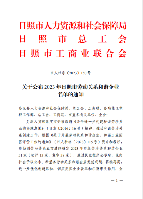 为激励先进,树立典型,发挥示范作用,推进和谐劳动关系创建活动深入开展,日照市人力资源社会保障局、市总工会、市工商业联合会开展了和谐劳动关系企业评价活动。