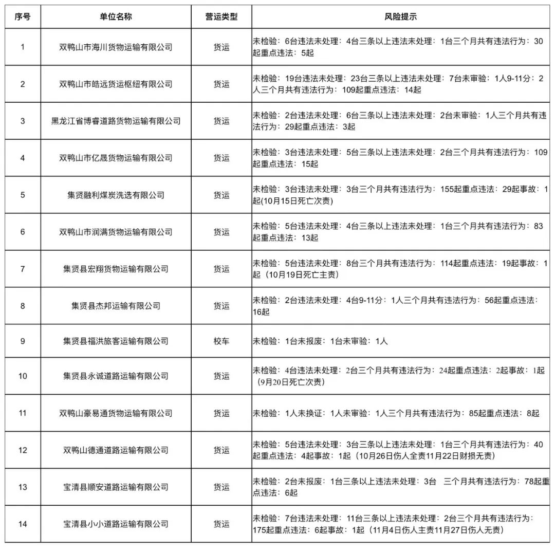 双鸭山市高风险客、货运输企业 │ 五大曝光行动