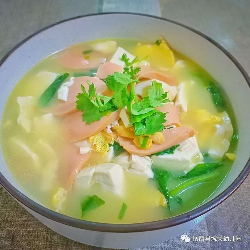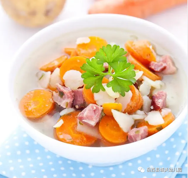 我园幼儿伙食根据学龄前儿童膳食,食物的季节及幼儿喜好,荤素搭配,保证孩子的伙食营养充足和均衡。