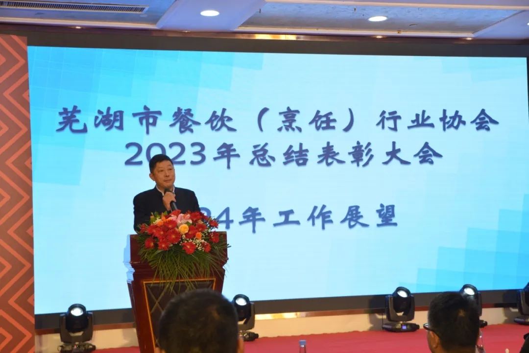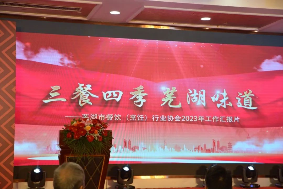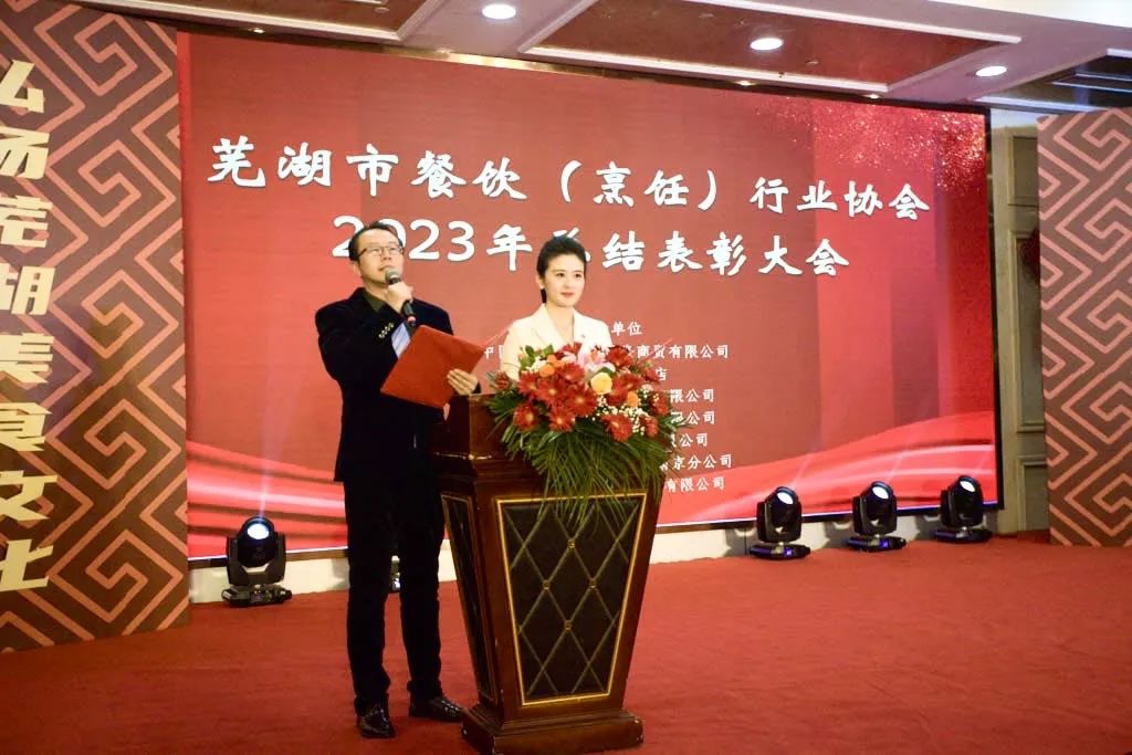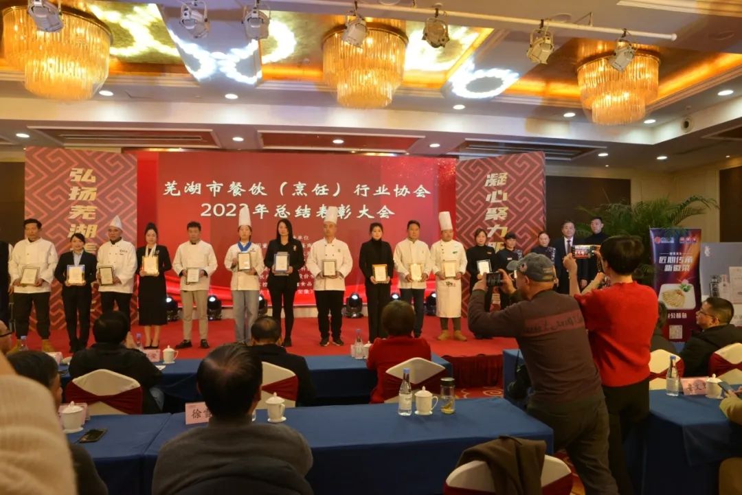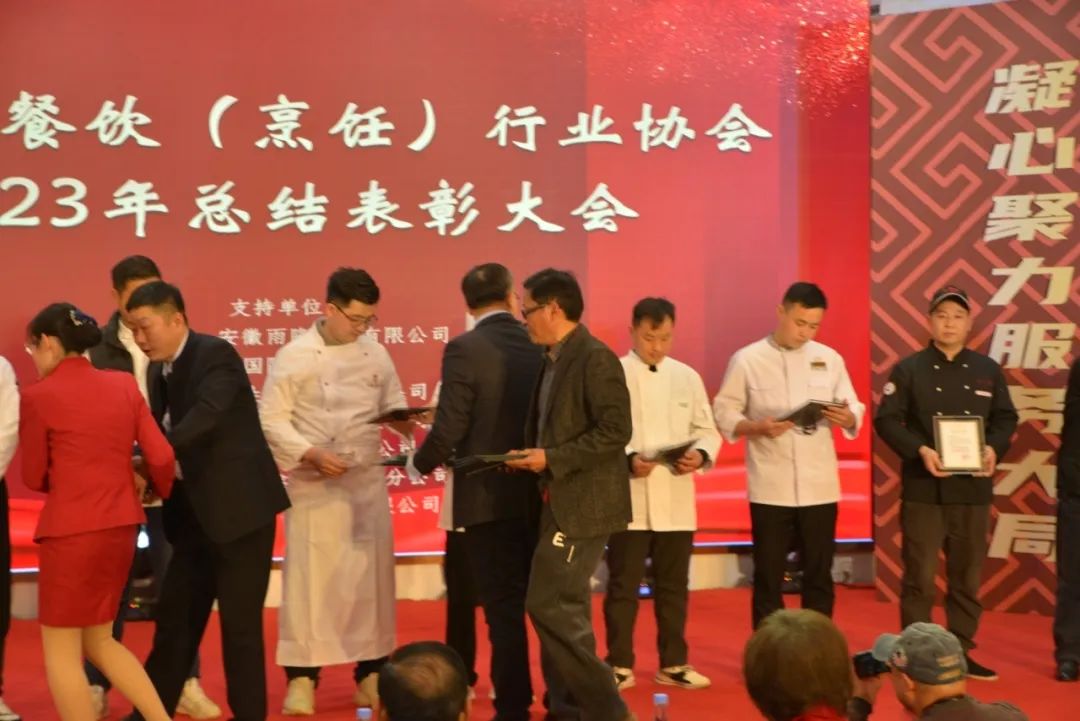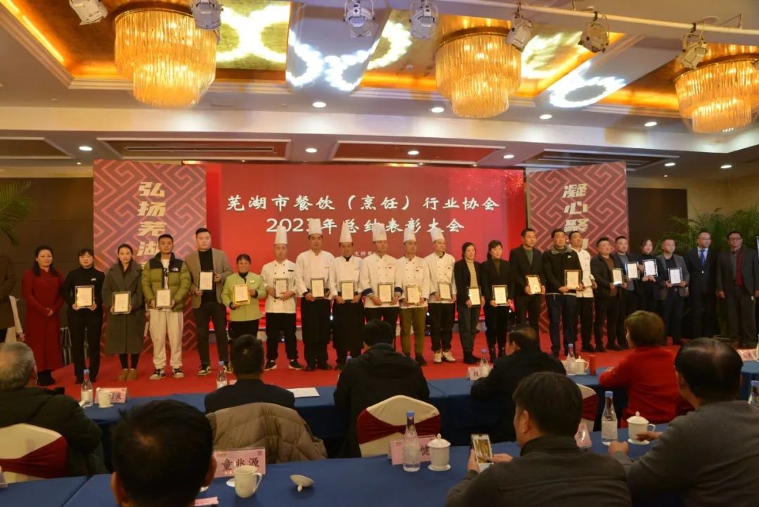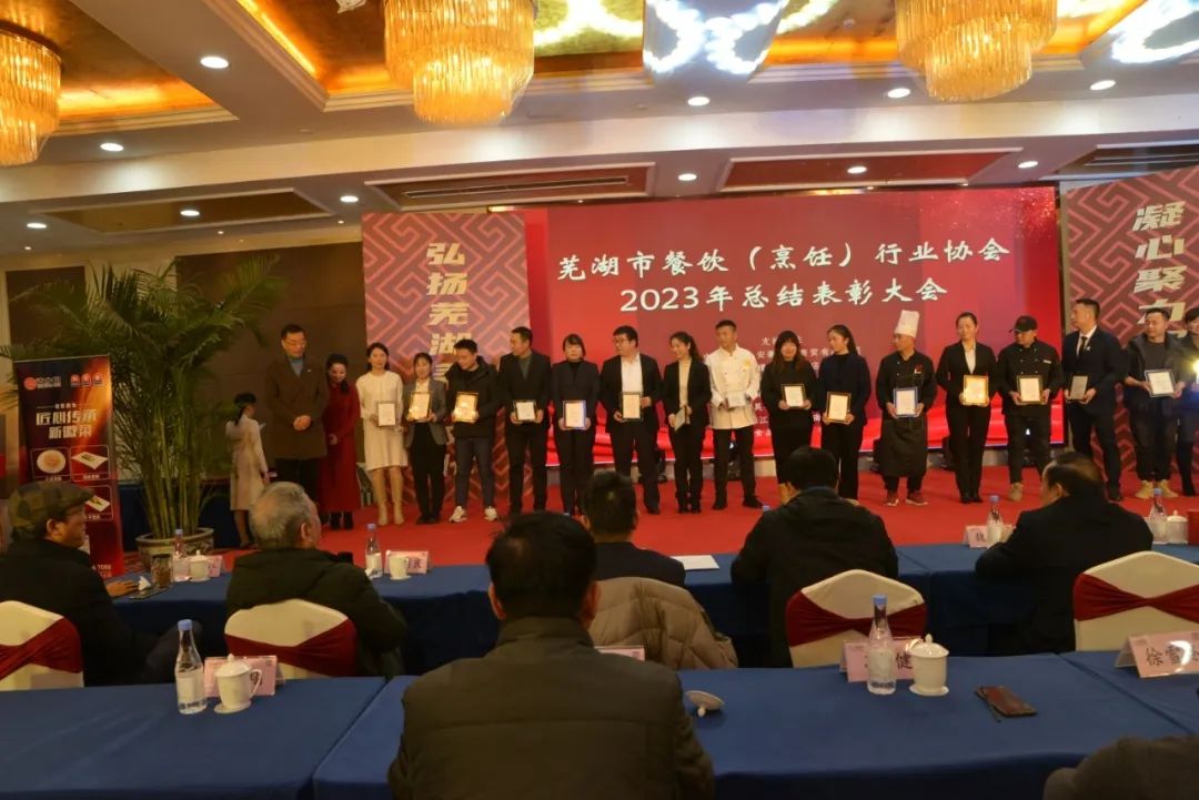 芜湖市餐饮(烹饪)行业协会对2023年度全市、市、区、县餐饮总结表彰大会在海螺国际大酒店召开,意义非常重大,大会全体起立,“唱国歌”。此次受表彰人员大都来自餐饮一线员工代表:有服务员,厨师,餐饮管理者,工会,党员代表等共400多人参加了大会。对一百八十名员工在2023年度做出贡献的个人逐项进行表彰。目的是激励宣扬他们在一线工作中辛辛苦苦做出的贡献与肯定。