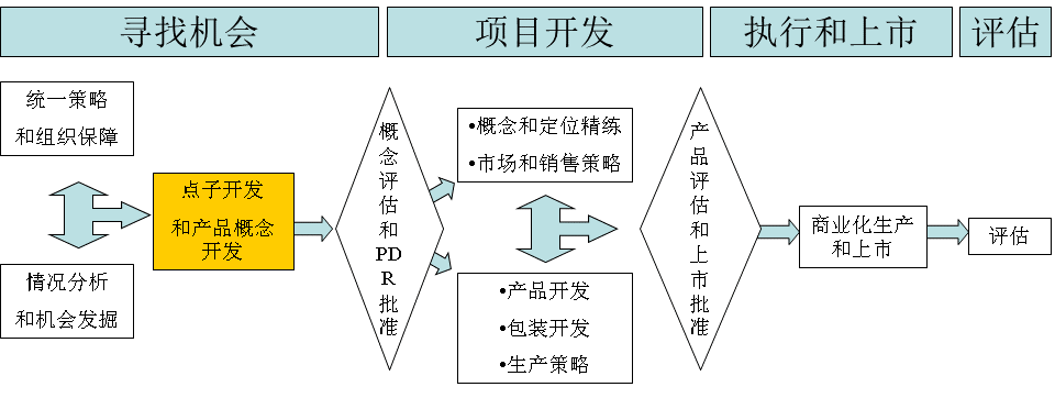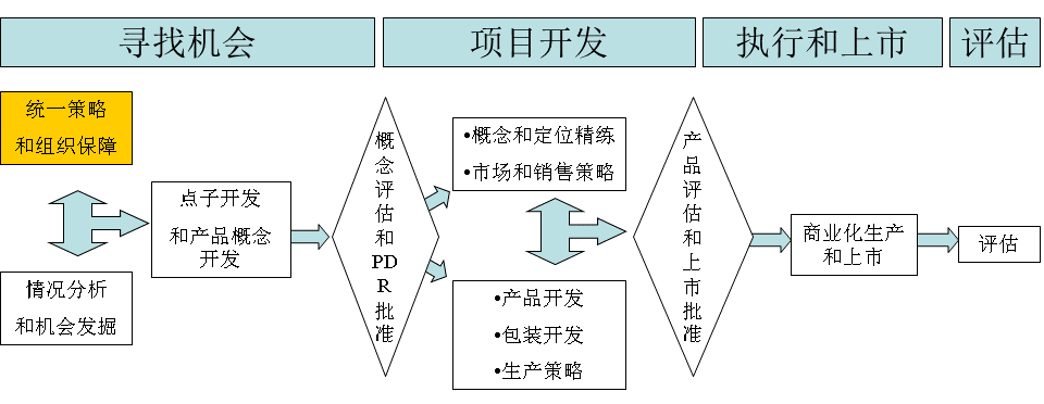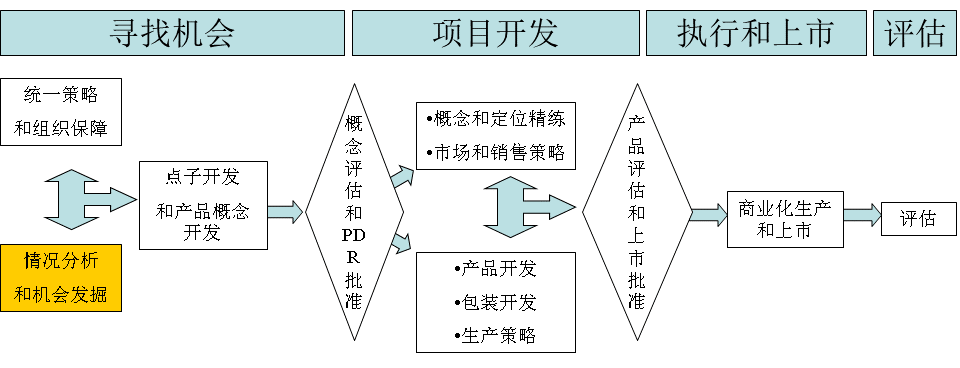 确立核心团队,包括生产,消费者调研, 研发,销售,财务,物流,采购