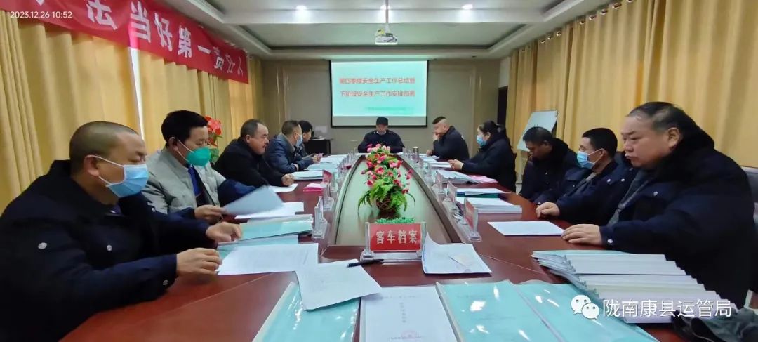 (客运企业传达学习会议精神)12月28日县运管局召开元旦假日暨12月份安全生产例会,安排部署重点工作任务。会后,各运输企业积极落实会议精神,紧扣“人人讲安全、个个会应急”的安全主题,积极策划认真开展了形式多样、内容丰富的安全生产工作会议。
