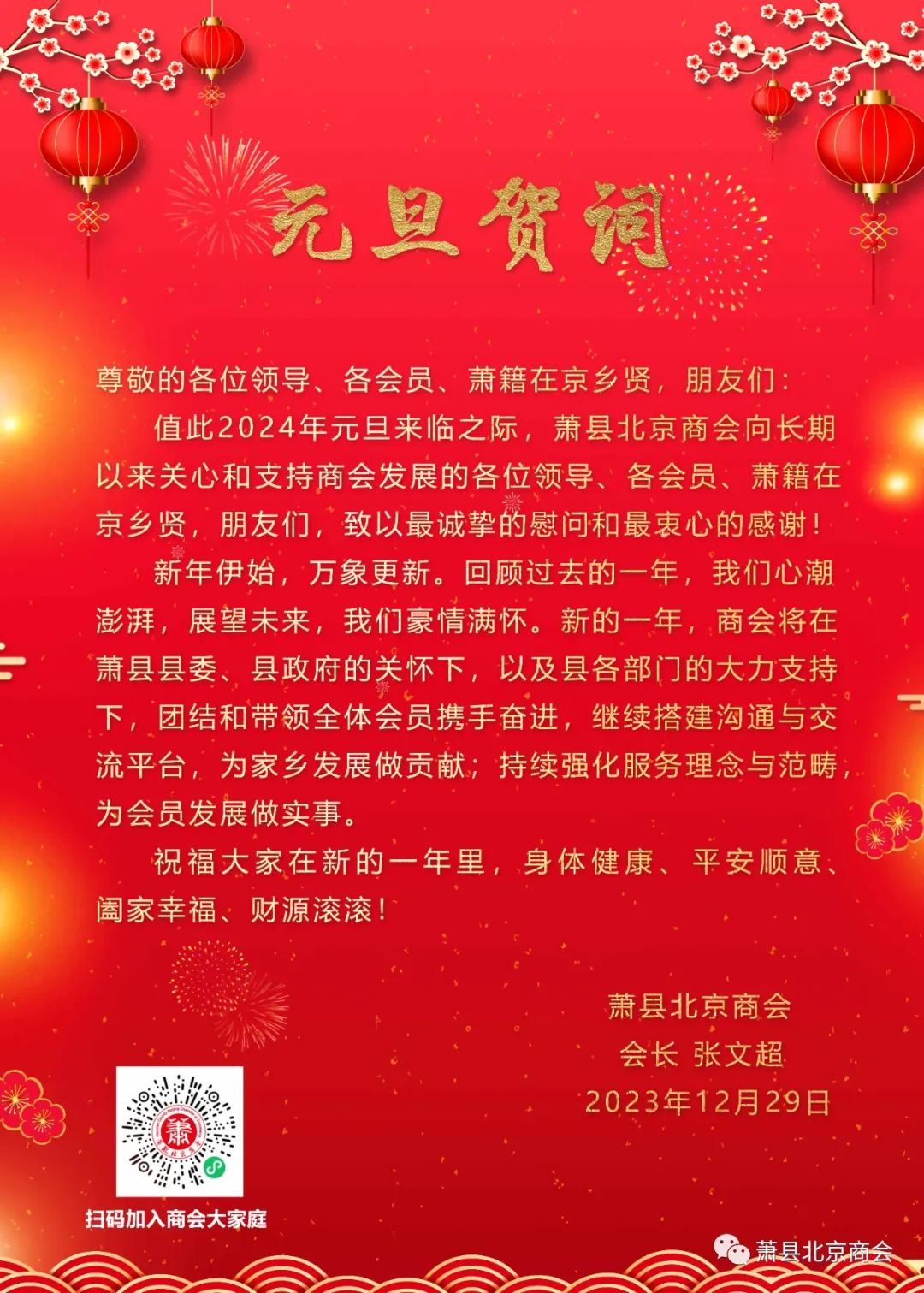 萧县北京商会祝大家元旦快乐!