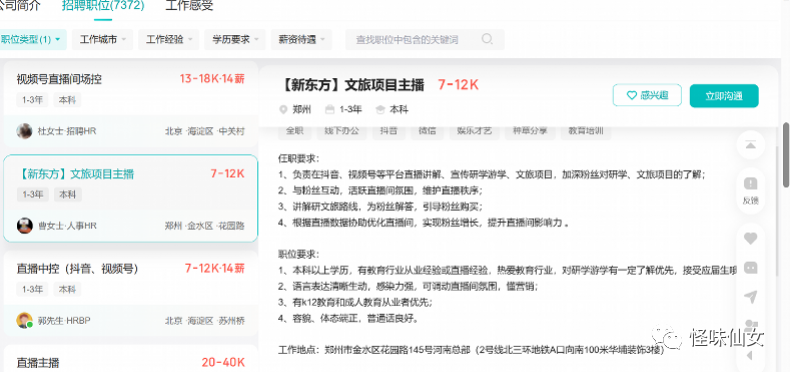 一、新东方文旅北京直播主播月薪2万元,各地区差距大
