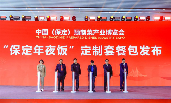 在博览会主论坛上,“保定年夜饭”定制套餐包首次亮相。该套餐包有直隶官府年夜饭、药膳康养年夜饭、保定小院年夜饭和首衡亲民年夜饭4个类别,共15套。这些套餐既体现保定饮食特色,又包含河北及全国范围内的特色饮食,为全国消费者提供可信的高品质年夜饭食材,丰富群众的年夜饭桌。直隶官府年夜饭套餐中的不少菜品有历史典故,让人在品尝美食的过程中感受厚重历史文化。安国药膳已拥有营养滋补类、辅助治疗类等七个大类200多个品种,此次药膳康养年夜饭套餐充分展示安国药膳的独特魅力。保定小院年夜饭套餐涵盖了驴肉宴、保定传统八大碗、硒鸽宴等。首衡亲民年夜饭套餐分为4人餐、6—8人餐和10—12人餐。保定驴火、保定直隶官府菜、安国药膳、阜平硒鸽等保定特色美食在博览会上进行重点推介,让观众了解源远流长的保定饮食文化。为了进一步提升食品安全水平、提高产品质量、提升品牌形象,保定市人民政府与京东科技集团联合打造的面向消费者和企业的政府公共服务平台——保定预制菜溯源平台在博览会上正式发布。近年来,保定抢抓预制菜产业发展新赛道,提出要打造“中国北方预制菜第一城”。本次博览会对保定预制菜进行重点推介。据介绍,保定市通过设立产业基金、支持研发创新、促进集聚发展、培育龙头企业、打造特色品牌,为预制菜产业提供发展空间。目前,保定市的6大预制菜产业园区有150多家企业,年产值达到150亿元。