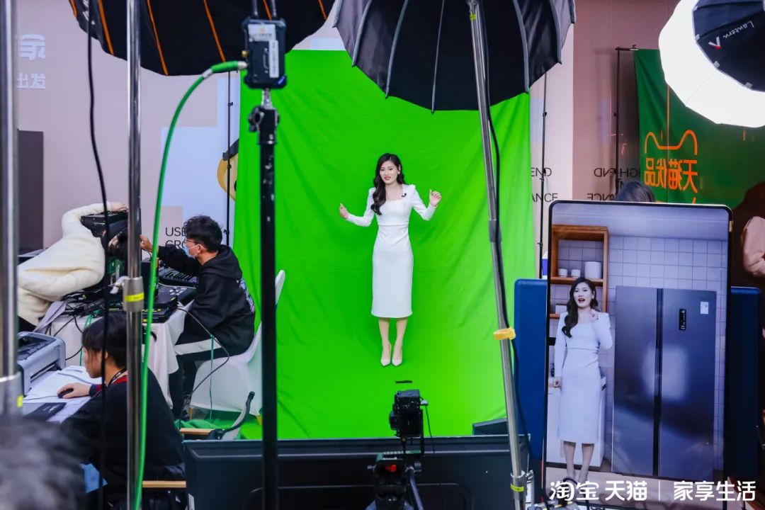 在天猫家享生活生态峰会期间,居然设计家联合天猫优品与极有家主播在绿幕直播间为西门子、海尔、美的、美菱、LG、奥克斯、格力创维等品牌现场进行3D直播带货。