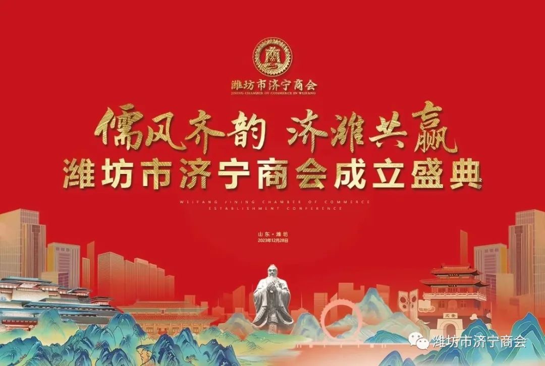 2023年12月28日(农历十一月十六日),“儒风齐韵·济潍共赢”潍坊市济宁商会成立盛典在富华大酒店胜利召开。