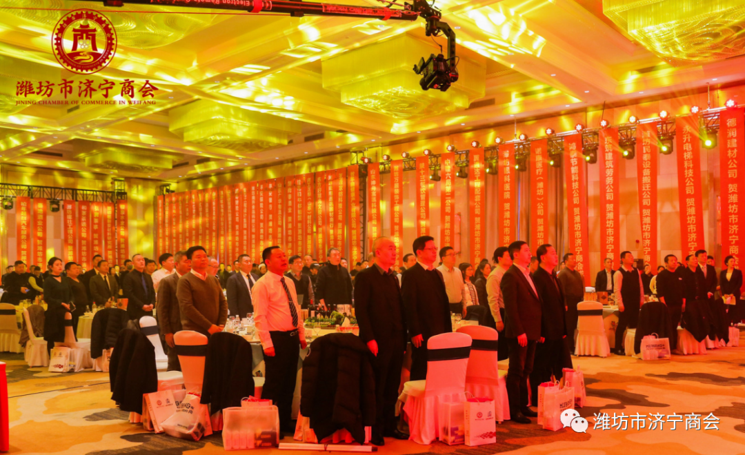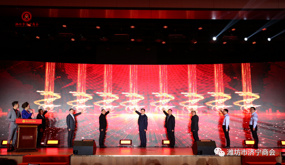 潍坊市委统战部副部长、市工商联党组书记、常务副主席徐凤徽,济宁市委统战部副部长、市工商联党组书记、常务副主席代超,潍坊市文化旅游局原一级调研员梁玉华,济宁市投资促进局党组成员、副局长刘扬国,潍坊市人大代表、潍坊恒信建设集团董事长张玉强,山东省政协委员、潍坊市新的社会阶层人士联谊会会长王建国,潍坊市政协委员、潍坊市济宁商会会长王超,潍坊市鲁西南商会会长季伯仲上台共同助力潍坊市济宁商会的盛大成立。