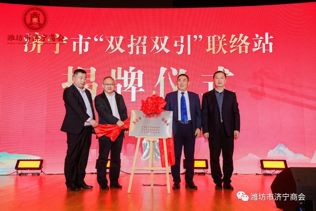 济宁市委统战部副部长、市工商联党组书记、常务副主席代超,济宁市投资促进局党组成员、副局长刘扬国上台为济宁市“双招双引”联络站的成立揭牌。“双招双引”是经济发展的重要战略,也是推动经济转型升级的重要途径。相信潍坊市济宁商会“双招双引”联络站的成立,一定会促进潍坊、济宁两地经济密切联系与发展。