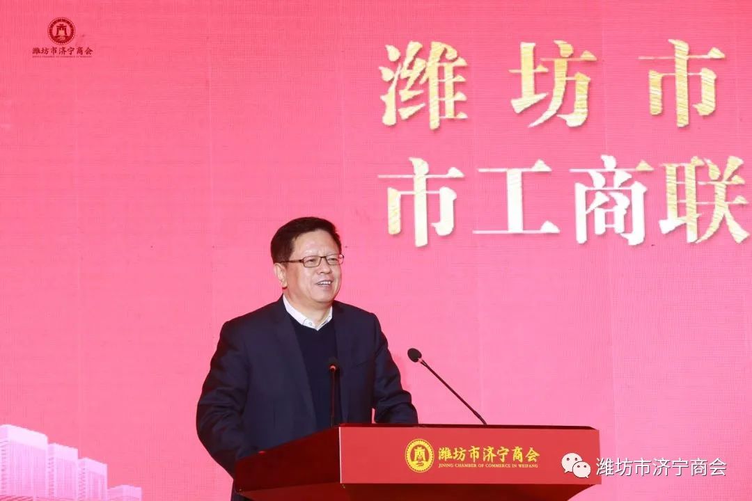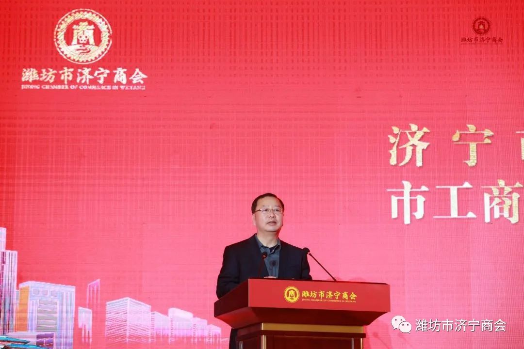 他在致辞中说到:“多年来,在潍奋斗创业的济宁籍企业家和各位乡贤,怀着追求梦想、砥砺奋进、不负桑梓的家国情怀,在联络乡情、投资兴业、回报家乡、奉献社会、促进两地交流合作等方面发挥了重要作用,赢得了在潍济宁老乡的信任,赢得了当地人民的赞赏和尊重,也赢得了潍坊、济宁两地党委政府的认可和支持,塑造了“厚道儒商”的形象品牌。借此机会,为商会发展提出几点希望:一是希望商会坚持正确的政治方向。二是希望商会弘扬企业家精神。三是希望商会高质量服务两地经济社会发展。相信,在王超会长的带领下,在潍济两地各级各部门的亲切关怀下,在全体会员的共同努力下,潍坊市济宁商会一定能发挥积极作用,为繁荣两地经济、促进社会发展作出更大的贡献”。