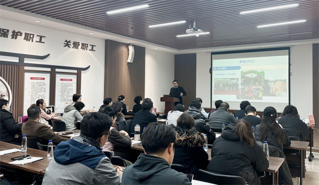协会秘书长张清杰在工作报告中以“数说2023”的形式全面回顾了协会在过去一年中的工作成果和亮点,详实的数据与大量生动的照片展示了协会在党建引领下积极承接政府服务职能、推动社区商业发展、提升会员服务质量、不断完善协会自身建设等方面的进步和成绩。