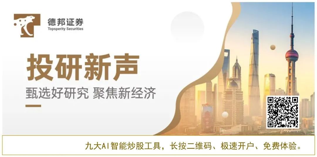 本订阅号不是德邦证券研究报告的发布平台,所载内容均来自于德邦证券已正式发布的研究报告,或对研究报告进行的整理与解读,因此在任何情况下,本订阅号中的信息或所表述的意见并不构成对任何人的投资建议。本订阅号所载的资料、意见及推测仅为本公司报告发布当日的观点和判断,本资料所指的证券或投资标的的价格、价值及投资收入可能会波动,在不同时期,本公司可发出与本资料所载内容、意见及推测不一致的报告。