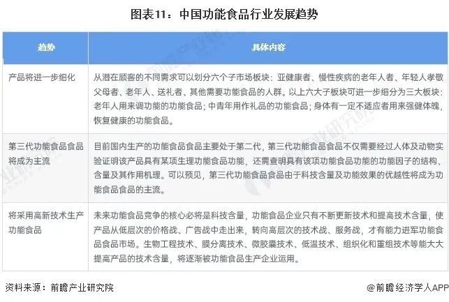 一是产品将进一步细化、二是第三代功能食品将成为主流、三是产品将采用高科技生产。