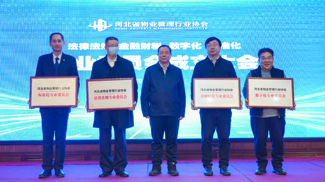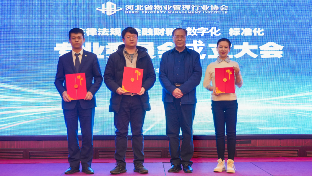 河北省物业管理行业协会会长李旭阳为法律法规专业委员会、金融财税专业委员会、数字化专业委员会、标准化专业委员会授牌,为各专委会主任颁发聘书。