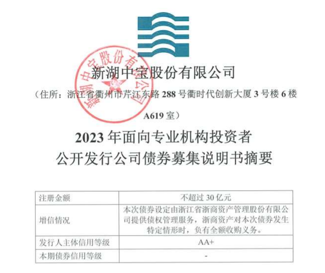 日前,温州民营房企新湖中宝发布公告:向专业投资者公开发行面值总额不超过30亿元的公司债券已获得证监会批复。根据公告:这笔融资由浙商资产提供债权管理服务,并对本次债券发生特定情形时负有全额收购义务。