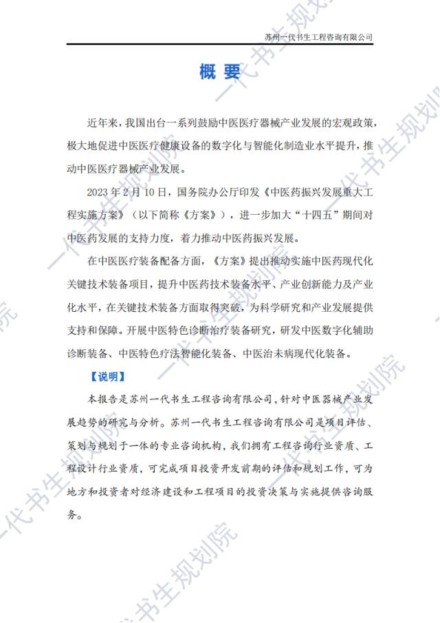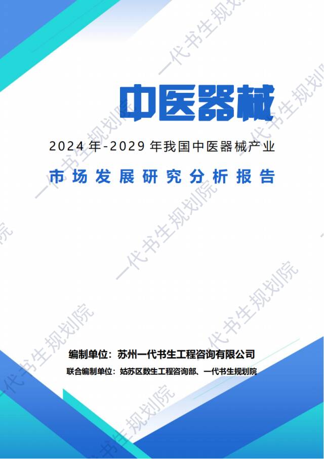 《2024年-2029年我国中医器械产业市场发展研究分析报告》编制公司:苏州一代书生工程咨询有限公司。